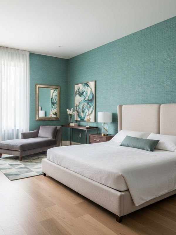 Perfect for a calming headboard feature wall with layered bedding and soft lighting.