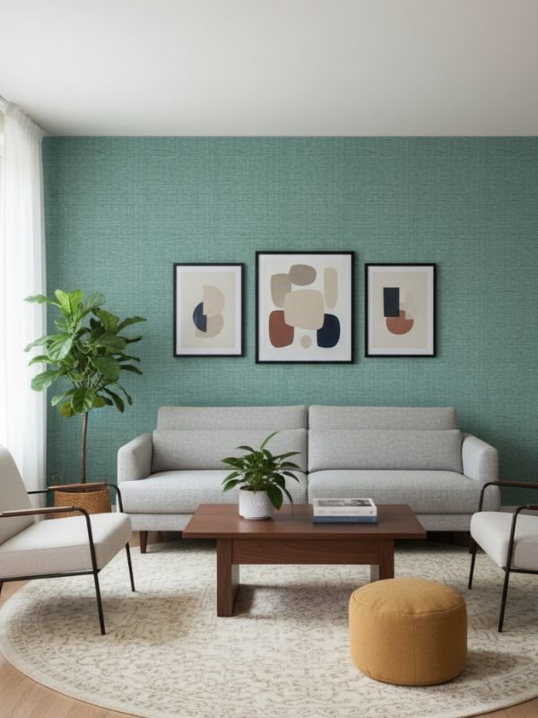 Creates a stylish and cozy backdrop for beige, cream, or grey sofas.