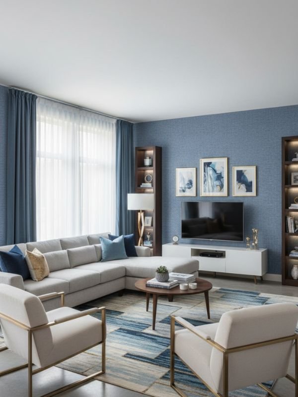 Creates a refined backdrop behind sofas, TV units, or accent walls. Pairs well with neutral upholstery, wooden furniture, and metallic décor accents.