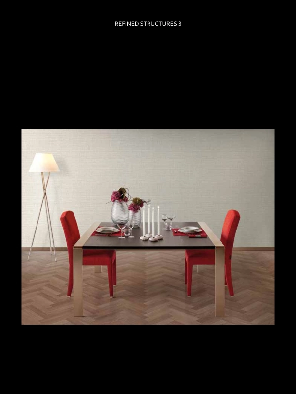 - La collezione Refined Structures 3 trae ispirazione dal vasto universo di stilemi Armani/Casa. I supporto vinilico – leit motiv della collezione, così come per le precedenti Refined Structures – è impiegato sapientemente per ricreare, grazie a tecniche produttive appositamente studiate, texture tridimensionali ed effetti materici che spaziano dalla moda alla natura.Le tipiche irregolarità dello shantung di seta e il caratteristico disegno delle finiture moire si rifanno al mondo dei filati e dei tessuti preziosi, elementi vegetali, quali il bambi e le foglie di ginkgo, omaggiano ifascino dell’estremo Oriente; trompe-l’oeil ed effetti boisere richiamano l’estetica dei rivestimenti murali d’altri tempi, reinterpretata in chiave contemporanea; disegni a intreccio celebrano l’artigianalitoe le lavorazioni manuali della tradizione.Novità introdotta dalla collezione Refined Structures è il formato, che per la prima volta propone roll dalla larghezza fissa a 1 metro.The Refined Structures 3 collection takes inspiration from the vast universe of Armani/Casa design. The vinyl support – leit motif of the collection as per the previous Refined Structures collections – is used strategically to recreate a three-dimensional texture and rich material effects, thanks to specifically conceived production techniques, ranging from fashion to nature.Typical irregularities of shantung silk and the defining pattern of moiré finishes recall the world of precious yarns and fabrics; plant elements, such as bamboo and gingko leaves, are a tribute to the charm of the Far East; trompe-l’oeil and boiserie effects remind the aesthetic of antique walloverings, reinterpreted in a contemporary way; intertwined motifs celebrate craftsmanshipand traditional handwork.A novelty introduced by the Refined Structures 3 collection is the format, which offers for the first time a standard width of 1 meter.
