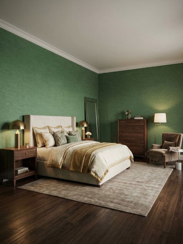 • Master Bedroom: Upholstered bench or accent chair
