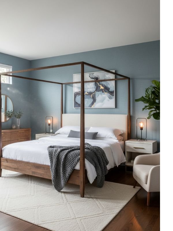 Creates a serene and sophisticated backdrop for beige, grey, or navy sofas.