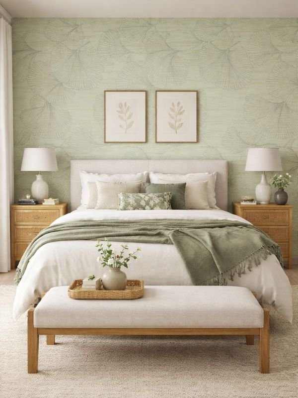 Use behind the headboard wall to create a calming retreat. Combine with soft linen bedding and warm bedside lighting.