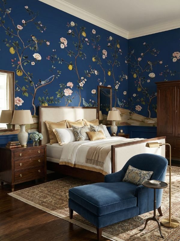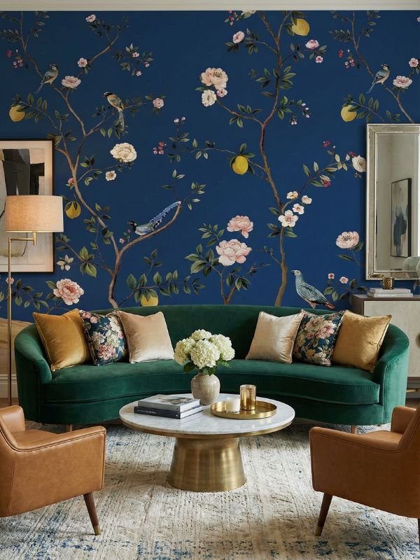 This Daisy Bennett dark blue floral mural wallpaper is perfect for: