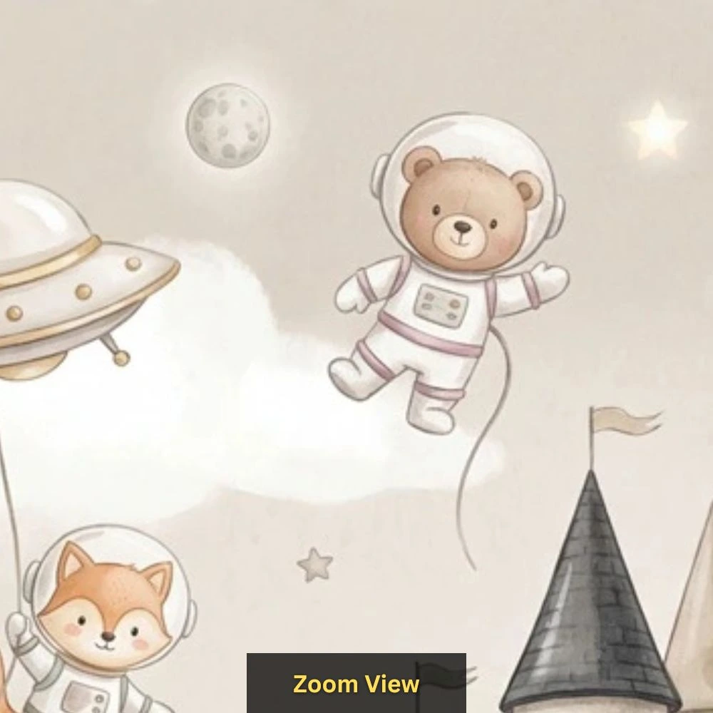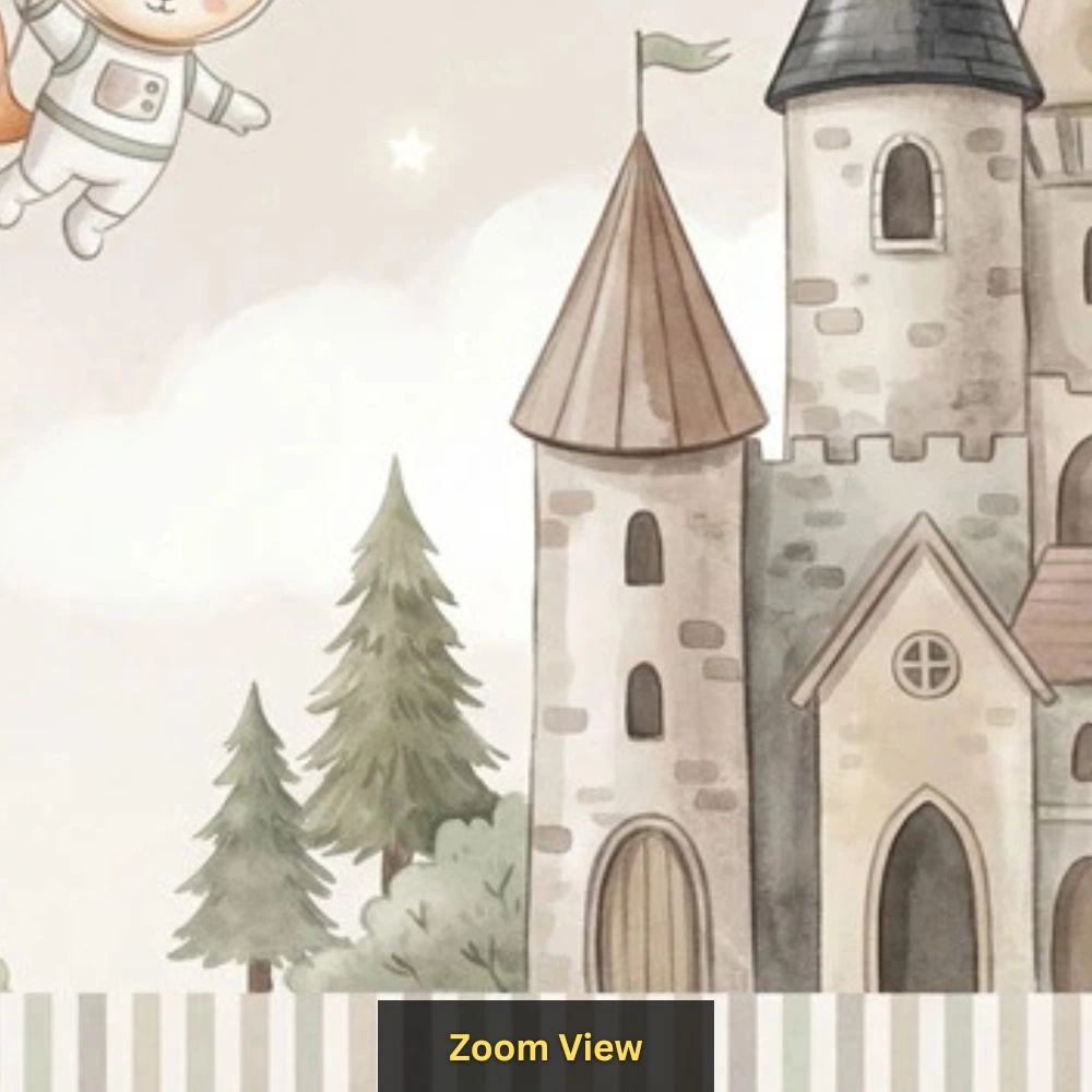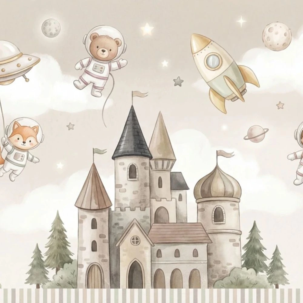 | Pattern Name : | Cute Astronaut Animals Castle Wallpaper for Kids Room – Soft Pastel Nursery Wall Décor |
