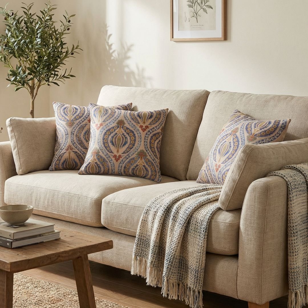 Style on a classic wooden or upholstered sofa for heritage charm.