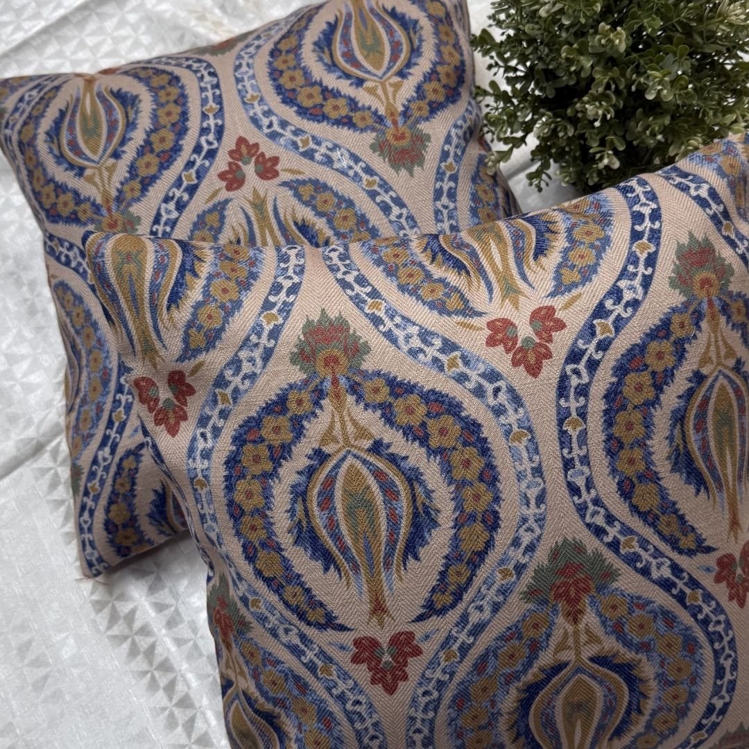 Design : Luxury Blue Paisley Cushion Covers in Premium Woven Fabric | Designer Soft Furnishings for Elegant Interiors |